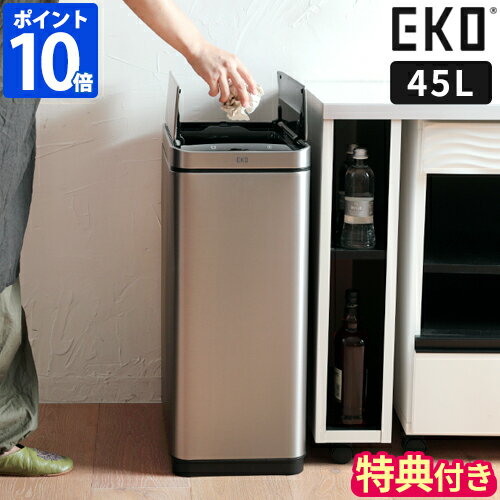 【特典付】ゴミ箱 EKO エックスウィング センサービン 45L 45リットル ごみ箱 センサー式 自動開閉 ダストボックス ふた付 フタ付 センサーごみ箱 大容量 両開き USB充電式 ステンレス おしゃれ シンプル キッチン リビング イーケーオー EK9387RMMT-45L