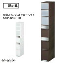 上部3段の収納ユニットには、500mlペットボトル飲料やレトルト食品・缶詰などがストックできます。下段3段の分別容器は5-7分別に対応。引出し内部の左右の切込みにスーパーなどの取っ手付きポリ袋をセットするだけで簡単に多種分別が行なえます。スイングパネル付き引出しには、使用頻度の高い資源ゴミを簡単に投入。最下段は足で踏めば開閉するペダル式なので、かがまずラクにゴミを投入できます。 Dust box & stocker Sorting swing stocker wide 分別スイングストッカー ワイド 収納とゴミ分別を両立させたマルチタイプストッカー 上部3段の収納ユニットには、500mlペットボトル飲料やレトルト食品・缶詰などがストックできます。下段3段の分別容器は5-7分別に対応。引出し内部の左右の切込みにスーパーなどの取っ手付きポリ袋をセットするだけで簡単に多種分別が行なえます。スイングパネル付き引出しには、使用頻度の高い資源ゴミを簡単に投入。最下段は足で踏めば開閉するペダル式なので、かがまずラクにゴミを投入できます。 - Features - Function 01片手で投入片手で投入できるスイングタイプ。ステンレスヘアライン仕上げで高級感があり、汚れが落ちやすいので衛生的に使えます。 Function 02 引き出し分別 容器内の切り込みに手提げ袋を取り付けて2〜3分割できます。分別ユニットの引き出し左右の切り込みに引っ掛けるだけで簡単にセットできます。 Function 03 ストレスフリー 最下段はかがまなくても捨てることができるフットペダルタイプ。 Function 04 使い勝手を追求 使用シーンをイメージしてストレスなく快適にお使いいただけるサイズ感を追求しています。 - Color/Variation - Dust box & stocker Sorting swing stocker wide MSP-12BS120 WH- ホワイト DBR- ダークブラウン 【カラー変更のお知らせとお詫び】 ※2021年7月発送分より若干のカラー変更がかかっています。 旧ナチュラル色 → ホワイト色 ※半透明の白からベタ白に 旧ブラウン色 → ダークブラウン色 ※より濃いブラウンに - Specifications - ■サイズ (約)W255×D500×H1,700mm ■重量 12.0kg ■素材 本体・引出し・天板 / ポリプロピレンペダルパーツ / ABS樹脂パネル・シャフト / ステンレス転倒防止具 / スチール・PP製ベルト・PP製バックル ■カラー ホワイト、ダークブラウン ■分別ダストボックス容量 55リットル ■生産国 日本 ※製品の価格、仕様等は予告なく変更する場合がございます。 予めご了承ください。 - Brand information - 生活から生まれたブランド「Like-it」 毎日の生活の中で使うアイテムの“使い勝手”はとても大切なこと。 そして、そのアイテムがあなたのライフスタイルをより快適なものにする ひとつの要素に繋がれば、もっと素敵。 ライクイットは、日々の生活のスパイスになる 「グッドデザイン」なものづくりを目指し、 これからも皆様に愛される商品をお届けしたいと思います。 その他「like-it」の製品はこちら