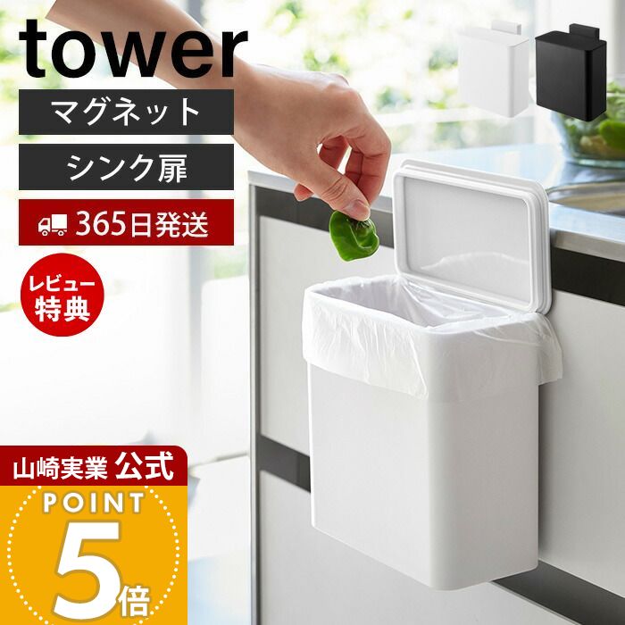 【365日出荷&当店限定特典付き】山崎実業 マグネット&シンク扉 ゴミ箱 タワー tower 公式 ごみ箱 マグネット式 ふた付きゴミ箱 臭わない 生ごみ パッキン付き スリム キッチン収納 ホワイト ブラック 4268 4269 yamazaki