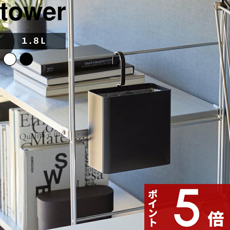 【レビュー特典】 tower 〔 山崎実業 引っ掛けられるゴミ箱 タワー 〕小さめ コンパクト スリム ゴミ箱 省スペース ミニ 引っ掛け 吊り下げ 浮かせる タオルバー ポール ラック ゲージ ワゴン おしゃれ 公式 ホワイト ブラック 白 黒 1.8L 10219 10220 新商品