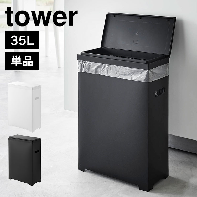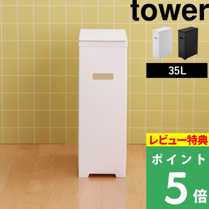 【レビュー特典】 tower 〔 山崎実業 スリム蓋付きゴミ箱 タワー 〕 ごみ箱 ダストボックス トラッシュカン 35L ゴミ袋 45L袋対応 袋掛け 分別 軽い フタ付き ふた いたずら 防止 シンプル おしゃれ 公式 ホワイト ブラック 白 黒 モノトーン 5203 5204 YAMAZAKI
