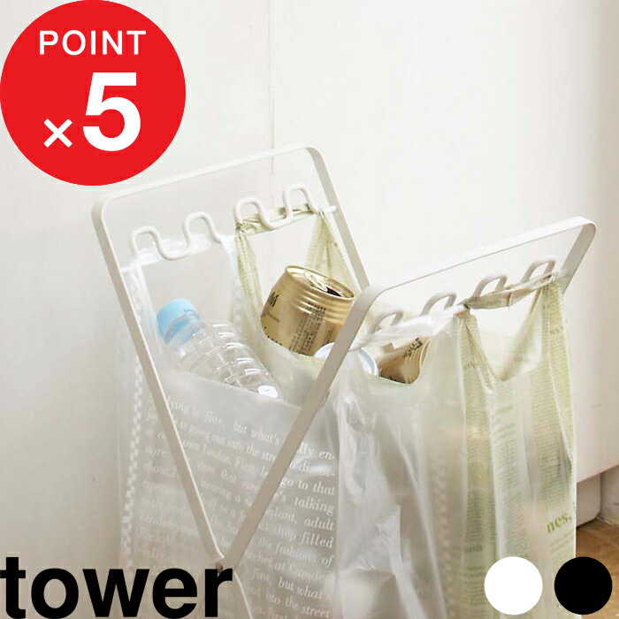 特典付き! 【 山崎実業 レジ袋スタンド タワー 】 tower ごみ箱 ゴミ箱 ダストボックス 分別 レジ袋 スタンド ゴミ袋 レジ袋ホルダー スリム コンパクト 折り畳み キッチン キャンプ BBQ シンプル おしゃれ 公式 ホワイト ブラック モノトーン 6340 6341 YAMAZAKI