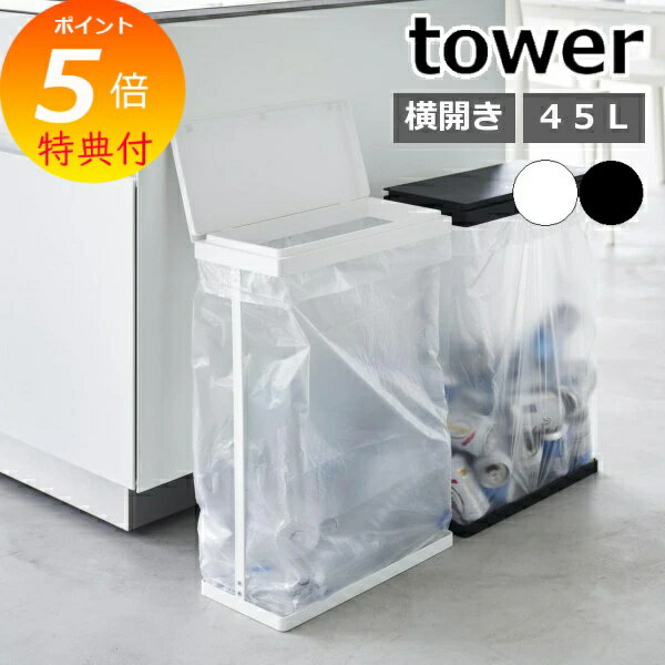 特典付き[ スリム蓋付き分別ごみ袋ホルダー タワー 45L 横開き ]山崎実業 tower 奥行約19cm ゴミ箱 45リットル ふた付き 台所 分別 ゴミ袋ハンガー スリム ゴミ袋スタンド ダストボックス 北欧 おしゃれ yamazaki 公式 モノトーン ブラック ホワイト 1761 1762