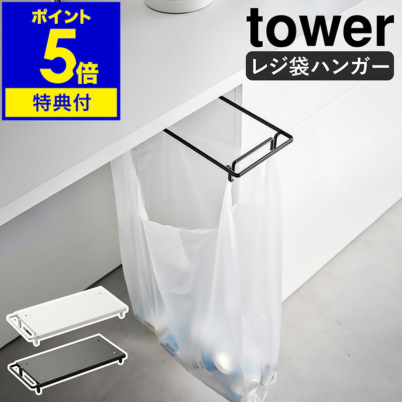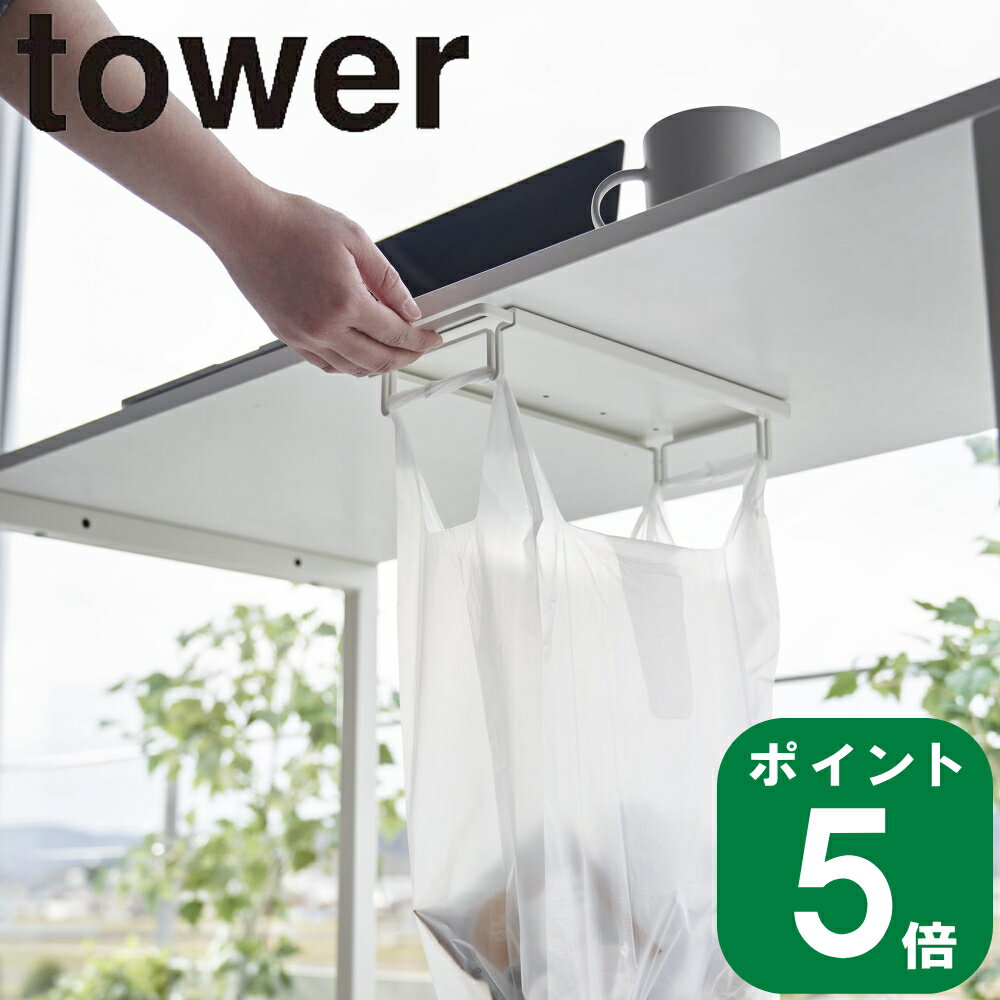 【特典付】[ テーブル下レジ袋ハンガー タワー ]山崎実業 tower ゴミ箱 キッチン 分別 レジ袋ハンガー ゴミ袋ハンガー レジ袋ホルダー ダストボックス デスク下 机 ごみ箱 ゴミ袋 省スペース シンプル おしゃれ モノトーン yamazaki ホワイト ブラック 3332 3333 公式