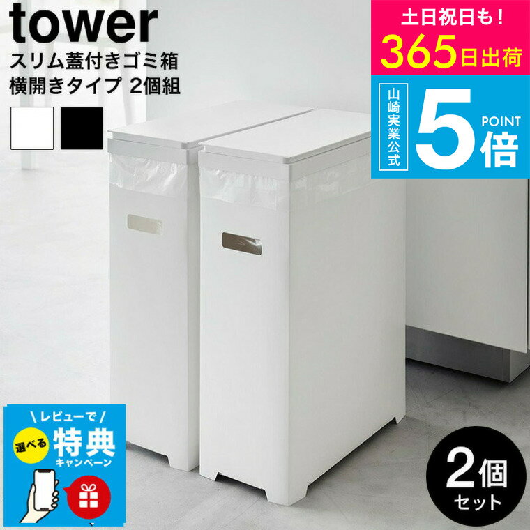 (スリム 蓋付き ゴミ箱 タワー 2個組 ) tower 山崎実業 公式 オンライン 通販 直送 サイト ゴミ ダストボックス 調理 キッチン リビング 寝室 おしゃれ シンプル モノトーン バルコニー ベランダ 白 黒 ホワイト ブラック 45L 新作 5205 5206 5233
