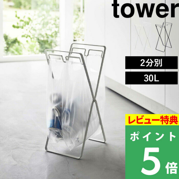 特典付き! 【 山崎実業 レジ袋2連&30Lゴミ袋スタンド タワー 】 tower ゴミ箱 ごみ箱 ダストボックス 分別 30リットル 2分別 ゴミ袋スタンド レジ袋スタンド レジ袋 ゴミ袋 ビニール袋 キッチン アウトドア シンプル 公式 ホワイト ブラック 5712 5713 YAMAZAKI