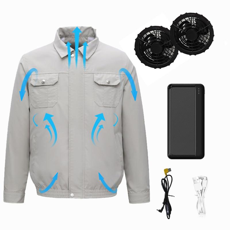 [YORIYOI] ファン付き作業服 ファン バッテリー フルセット 空調作業服 20000MAH大容量バッテリー 大風量 三段階風量調節 作業着 アウトドア ゴルフ 釣り キャンプ 登山など 男女兼用 日本語説明【空冷服】ワークユニフォームのデザインで、さまざまなアウトドア作業に適しており、日焼け止めとしても使用できます。腰の左右両側には特定のファンを取り付ける設計があり、小型ファンが取り付けられた後、風が外から内へ流れ、服の裾には緩い縁があり、空気が体のそばを循環して流れ、蒸し暑い環境でも涼しさを保つことができ、体表は汗をかくことなくべたべた感があります。【ファン-3段階調節風量】ファンは3段階あり、異なる体感に応じて最も快適なギアを調節できます。 ファンフロントネットカバーは取り外し可能で、内部を掃除しやすく、定期的に羽根を掃除することでピュアな風送りができ、涼しさをキープします。 羽根の斜面に風を入れ、冷却スピードが速く、風力が十分で、腰を吹き飛ばさず、風が周りに流れ、衣服内は空気を循環させ、使用全体に膨張させるため、服のサイズは普段より少し大きくなります。【専用バッテリー】スマートウェア専用バッテリー、より良質な電池セルを採用。 5V出力電圧、20000mah容量は8-12時間に達します。 各製品は製品の寿命をするために老化テストされています。 typeCとmicroの2種類の充電ポートを搭載し、デュアルUSB出力で様々な充電ニーズを満たします。 小型でポータブル、スマートウェア、各種タブレット、スマートフォン、MP3、MP4など様々なポータブルデジタル製品に適用、一台で多用途、お金を節約できます。【広い適応シーン】商品のデザインはクラシックで、男女兼用、使用シーンが広く、フィッシング、アウトドア作業、ハイキング、アウトドアレジャーなど、どんな暑さを感じるシーンでも適用でき、ムレを防いで、夏の暑さから私たちの生活を守り、まだ楽しい過ごせます。【パッケージ内容】製品は空冷服*1、ファン*2、バッテリー*1、USBケーブル*1、DCアダプター*1、日本語取扱説明書*1。要注意:服は洗濯機で洗濯できますが、洗浄前に必ずファンバッテリー関連アクセサリーを取り外してください。 ご使用中に何か問題がございましたら、速やかにご連絡頂ければ、喜んで対応致します。
