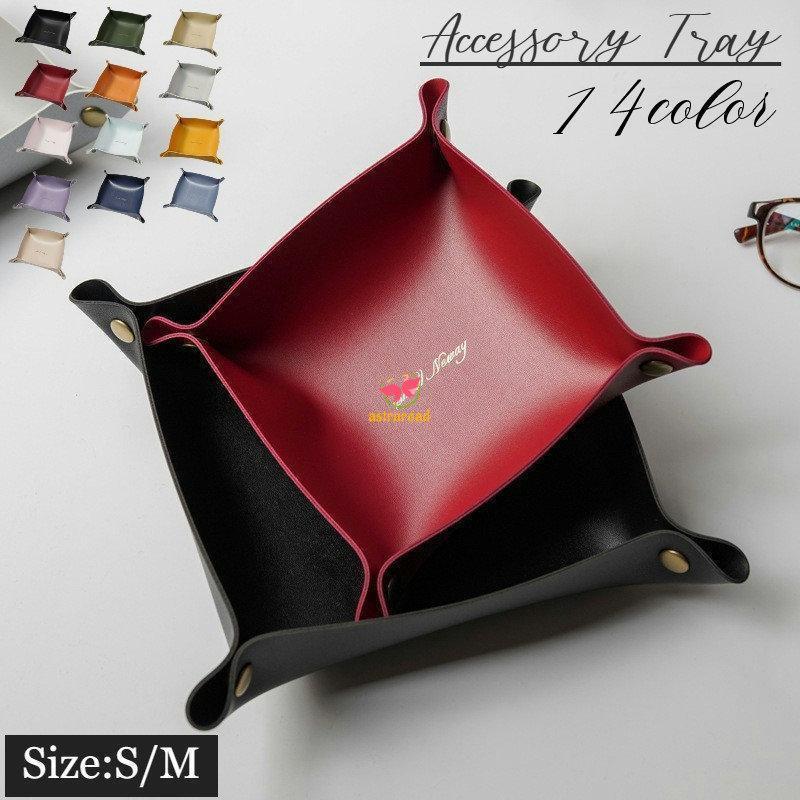 アクセサリーケース Sサイズ Mサイズ レザートレイ レザートレー マルチトレー 小物入れ 鍵入れ 収納 携帯 折り畳み式 正方形 北欧風