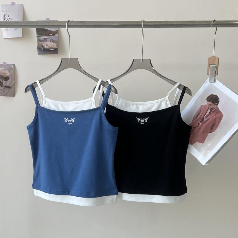 Tシャツ レディース 春夏 アメリカンスタイル レイヤード風 キャミソール トップス スリムフィット ブラック ブルー 伸縮性