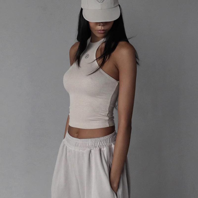 トップス レディース アメリカンスタイル 刺繡 タンクトップ キャミソール ショート丈 普段使い・款式: かぶり・版型: 修身型・衣長: 短め(40cm超え50cm以下)・面料名称: その他・主な素材: その他・カラー: トップス、ショートパンツ・サイズ: XS、S、M、L・主な素材の含有量: 50%~70%・スタイル: ストリート系・対象年齢: 成人・スタイルタイプ: ストリート・伸縮性: なし・適用性別: 女性・肩紐スタイル: ホルターネック