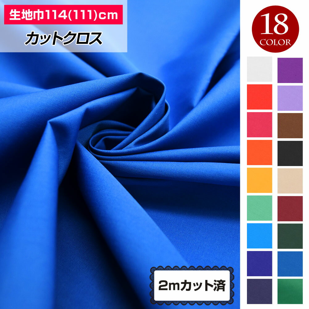 【即納】生地 無地 TCブロードカラー生地 (111cm巾x2mカット済) 18色展開 張りのあるしっかり生地 ベーシック 小物 雑貨 手芸 ソリッド 手作り 衣装 TC 入園 入学 体育祭 運動会 文化祭 ホワイト レッド イエロー ブルー ブラック LE210102 [M便 3/4]
