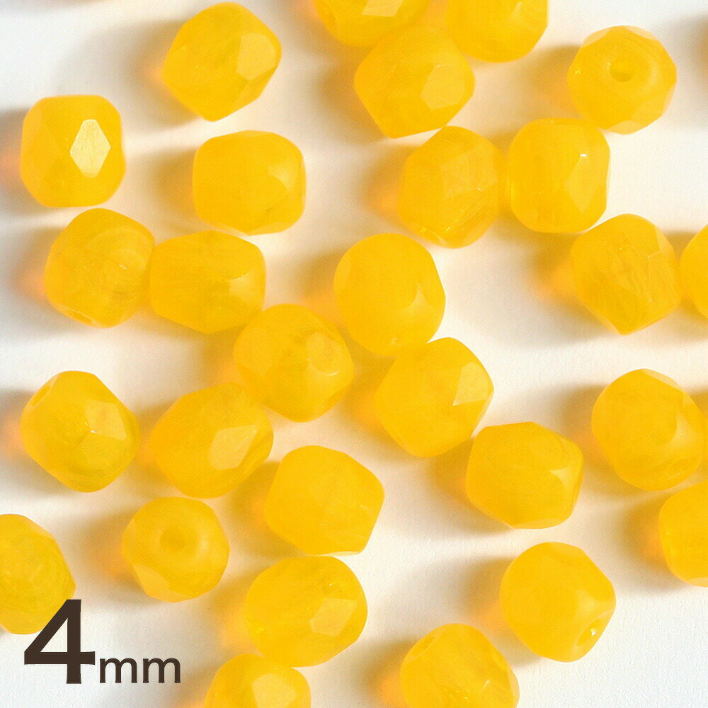 チェコビーズ FP ファイヤーポリッシュ 4mm オペークイエロー 約30個 黄色 イエロー ビーズ パーツ ピアス アクセサリーパーツ
