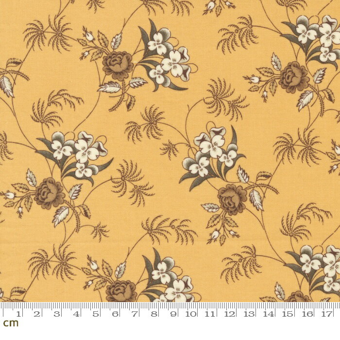 【Moda モダ】Amelias Blues-31652-17(2E-08) マスタードイエロー ブラウン 植物柄 アンティーク柄 コットン100% シーチング【10cm単位販売】