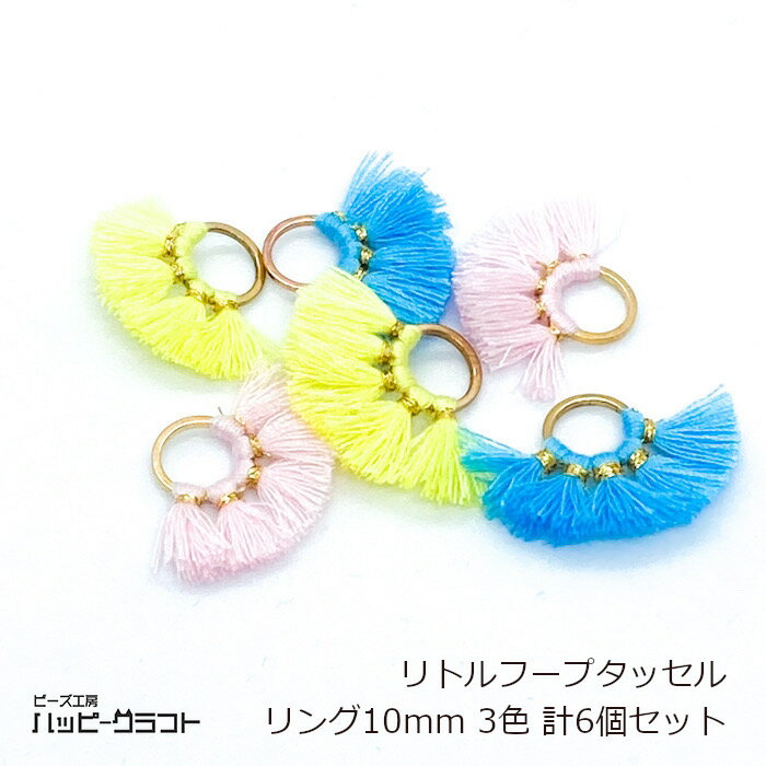 リトルフープタッセル リング10mm 3色6個セット リングタッセル ゴールド金具 フリンジ ブルー イエロー ピンク ピアス バッグチャーム ストラップ アクセサリー パーツ オリジナル カーテン 小さめ 手芸 材料 素材 可愛い ハンドメイド S-129