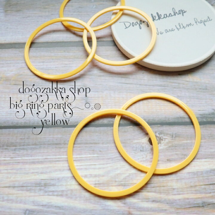 【道後雑貨店】4個 ※特大サイズ6.4cm リングパーツ イエロー アクリルストーン アクリルビーズ チャーム レア インポート 手芸 材料 副資材 レトロ モード系 デザインストーン