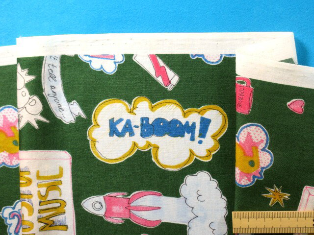 在庫処分綿ローンプリント生地ロケット・グリン×イエロー(105cm幅 2m)