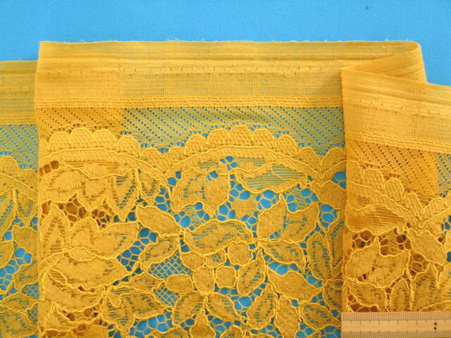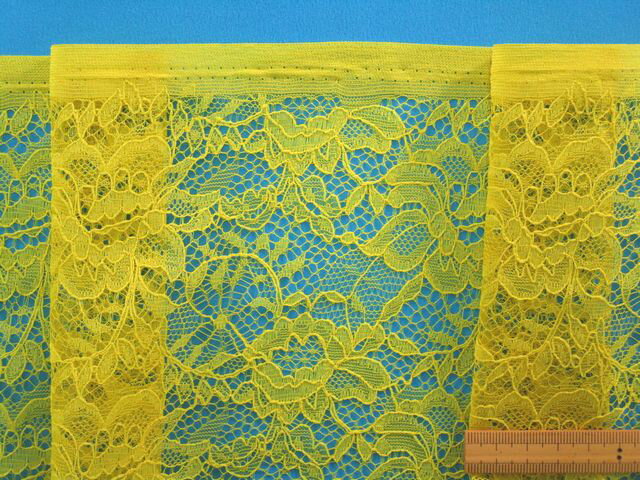 ラッセルレース生地花・濃イエロー(140cm幅 1.5m)