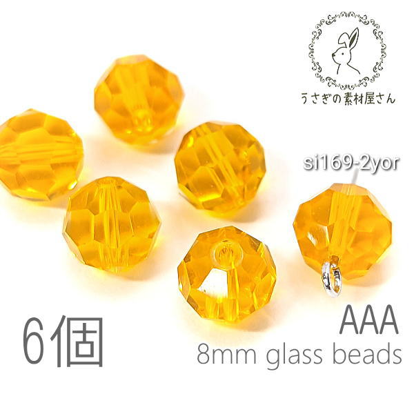 【最大2000円OFF】ブラックフライデー限定!ガラスビーズ 8mm グレードAAA 多面カットビーズ ガラスパーツ 6個/イエローオレンジ系