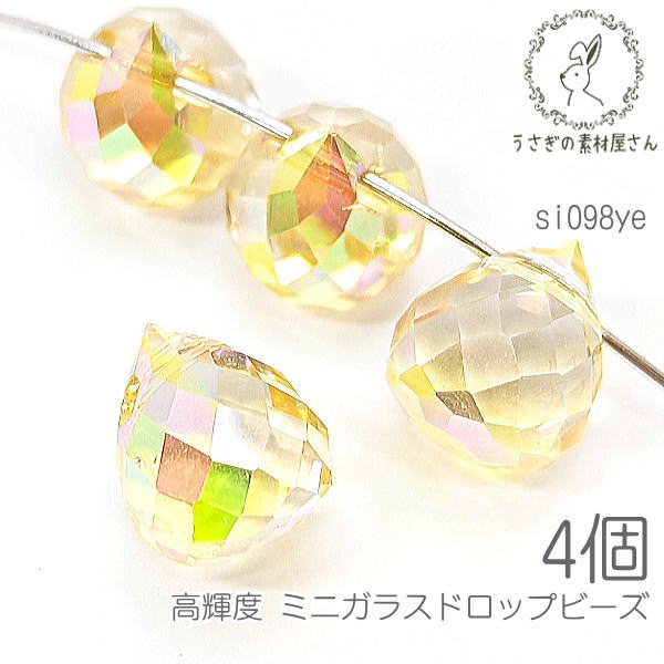 【最大2000円OFF】ブラックフライデー限定!ガラスビーズ 横穴 9.5mm ドロップ 雫型 チャームにも 高輝度 オーロラ 光沢 メッキ 4個/イエローゴールド系