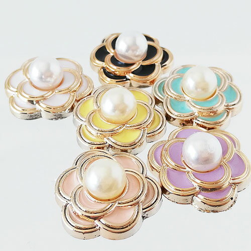 カメリア フラワー ボタンパーツ 貼り付け デコパーツ 10個 ホワイト ブラック パープル ピンク イエロー ブルー 花 プラスチック パール ym1-2542 GreenRoseYumi