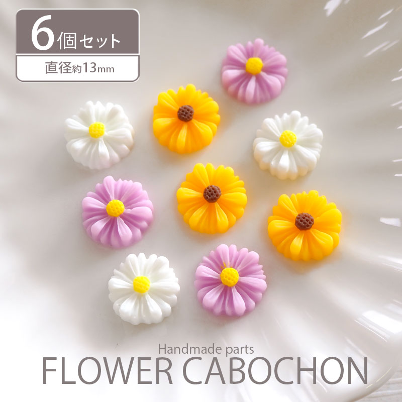 フラワー カボション 6個セット ミニデイジー BLAZE ハンドメイド モチーフパーツ 商用利用可能 クラフト 手芸 手作り 資材 素材 材料 作製 装飾 アレンジ リメイク シンプル かわいい 子供 キッズ 女の子 アクセサリーパーツ ホワイト イエロー パープル 約1.3cm