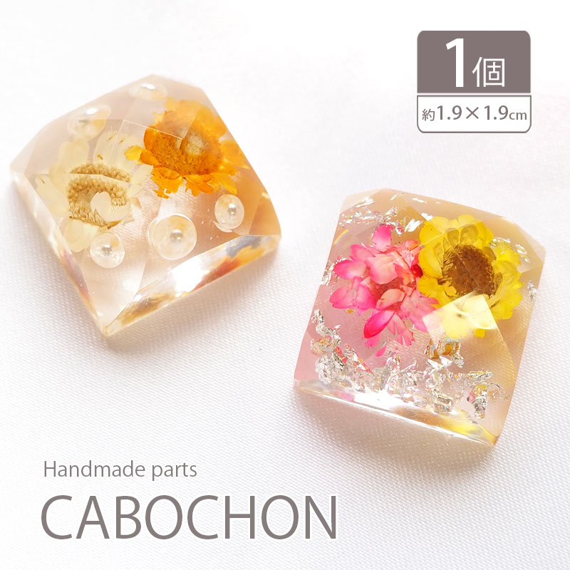 カボション クリア & フラワー BLAZE ハンドメイド 手芸 クラフト 商用利用可能 手作り 資材 素材 材料 作製 装飾 アレンジ リメイク 貼り付け かわいい おしゃれ 女性 レディース アクセサリーパーツ アイボリー オレンジ ピンク イエロー 透明 約1.9×1.9cm