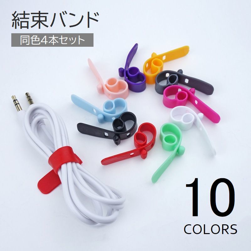 送料無料 結束バンド 4本セット 結束ベルト イヤホン ケーブル コード シリコン まとめる 束ねる スッキリ 絡まり防止 ケーブルグリップ ケーブルホルダー クリップ