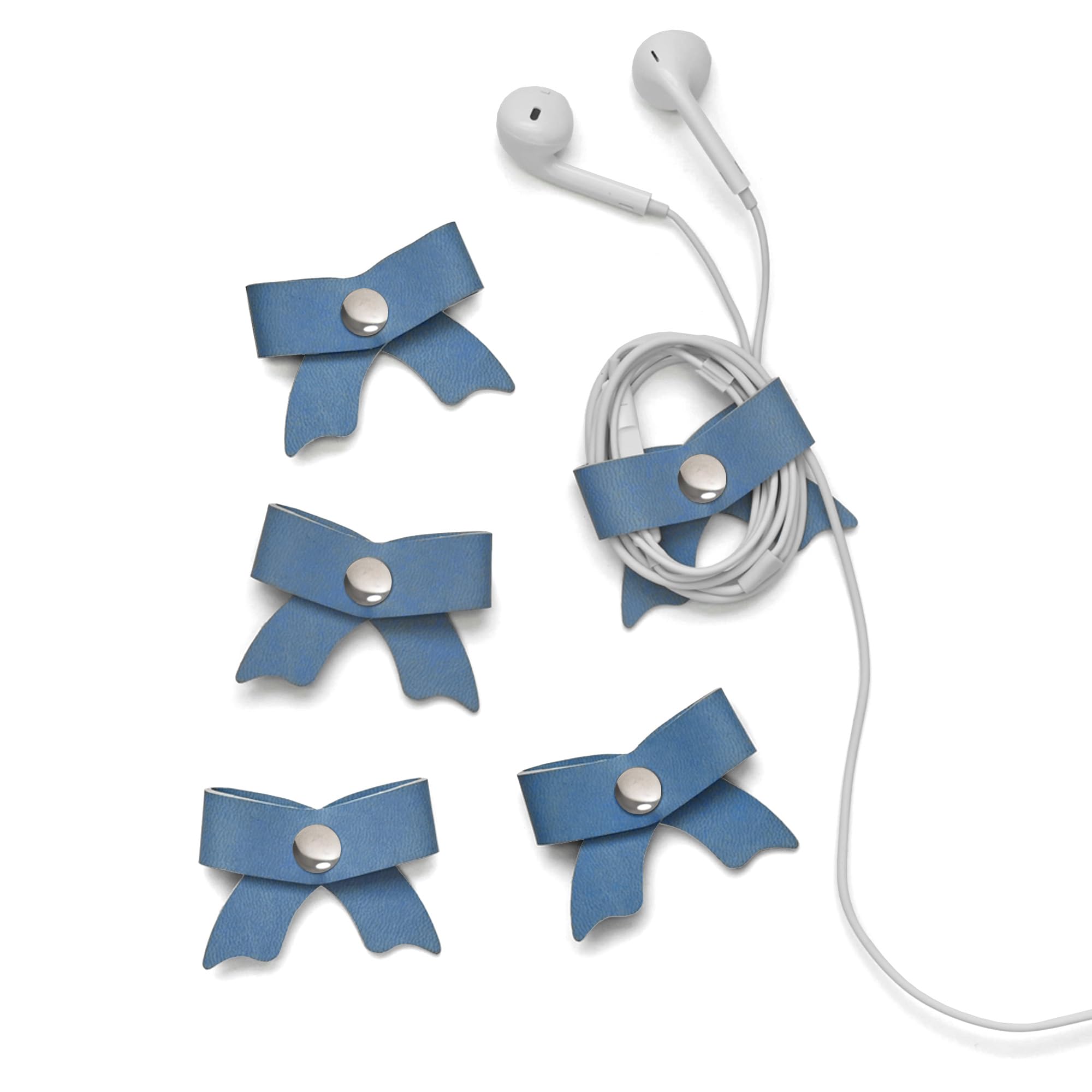 SenseAGE ケーブルクリップ [5本セット] PUレザー 可愛いリボン 文房具 イヤホンクリップ コード巻取り 整理 収納 配線まとめ-アクアスカイ(7cmx5cmx1cm)