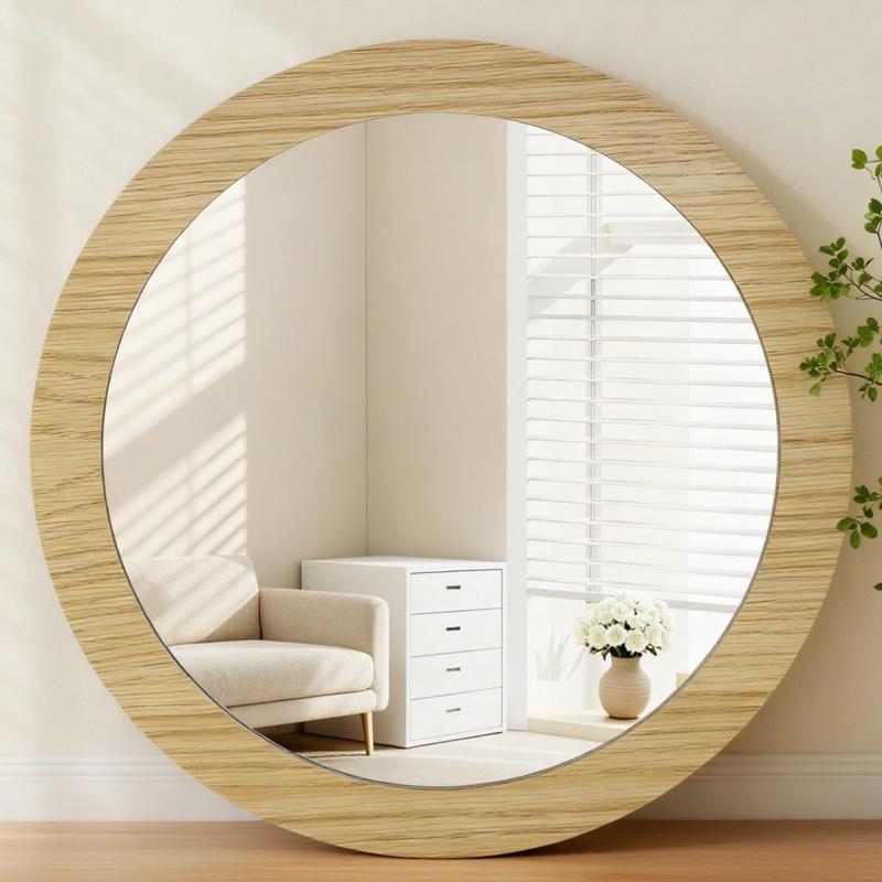 Browgrow 鏡 壁掛け鏡 壁掛けミラー 天然木フレーム 丸型ミラー ウォールミラー インテリア