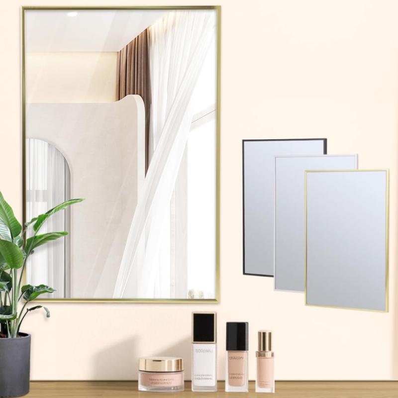 Browgrow 【50cm*70cm】鏡 壁掛けミラー ウォールミラー 壁掛け鏡 矩形鏡 バスルームミラー 浴室鏡 玄関鏡 アルミフレーム 化粧鏡 玄関 洗面 トイレおしゃれミラー 壁飾り 化粧 メイク(ゴールド 5