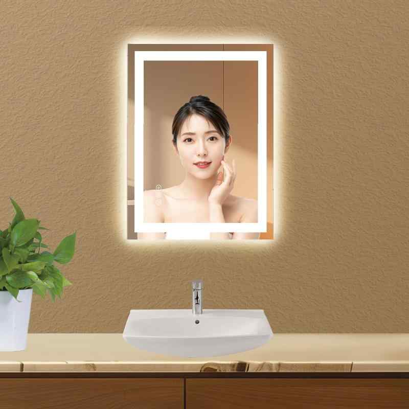 BOOLUU LED壁掛け鏡 LEDミラー バスルーム化粧鏡 お風呂カガミ 強化ガラス ウォールミラー 前後LEDライト付きカガミ 無段階調光 3色調整可能 曇り止め 防水 メモリー機能 横縦両用 洗面台 手洗