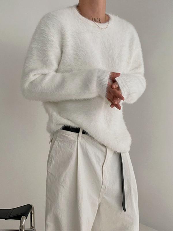 ニット メンズ 秋冬 韓国風 ドロップショルダー ゆったり 無地 トップス 柔らかい 暖かい クルーネック セーター ニットソー プルオーバー カシミアタッチ
