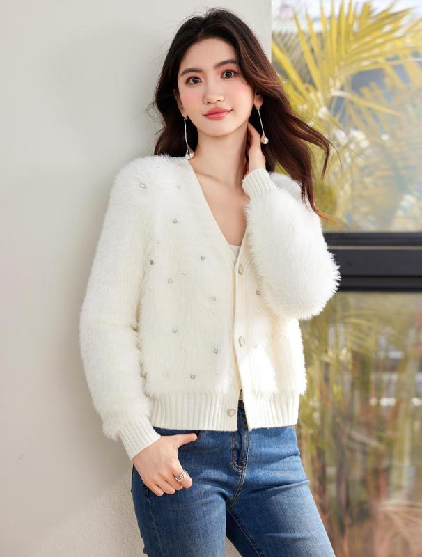 ニット カーディガン レディース 秋冬 トップス Vネック ミンク カシミア タッチ 羽織り 細見え 電気メッキ加工
