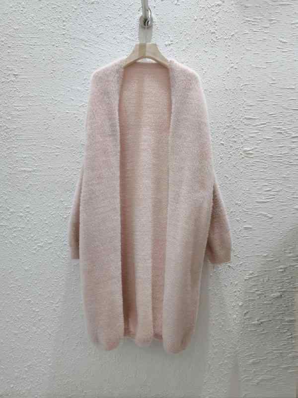 ニットカーディガン レディース 秋冬 厚手 フェイクミンク カシミアタッチ ロング丈 ゆったり オーバーサイズ 羽織り アウター 暖かい かわいい ピンク系