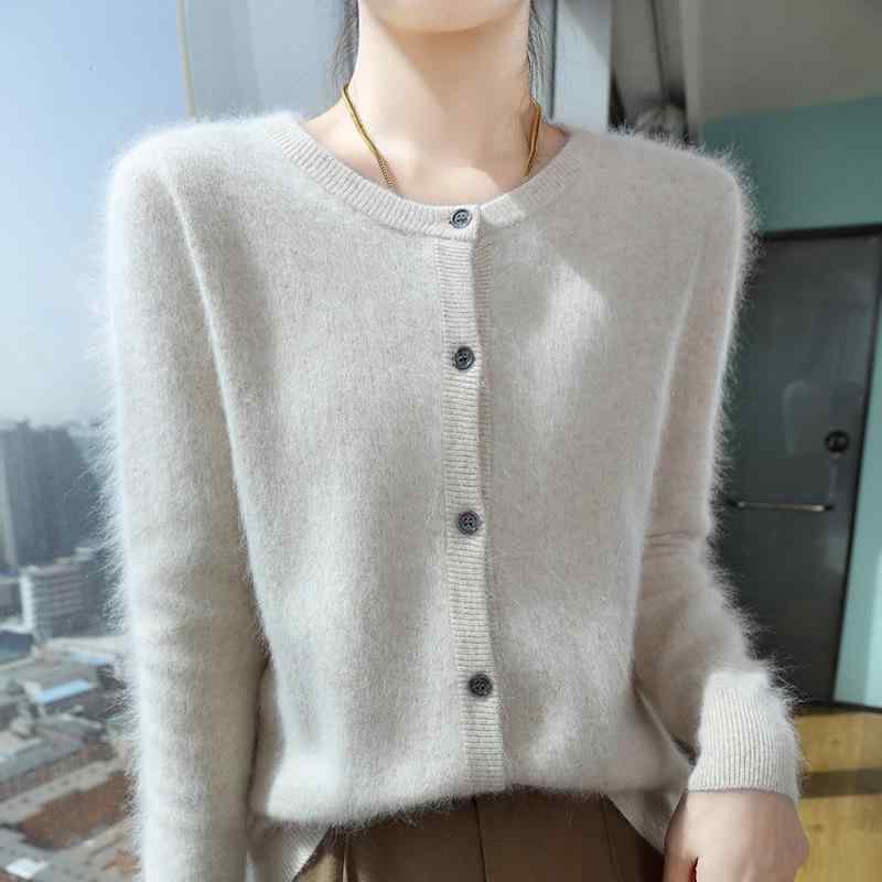 ニット カーディガン レディース 秋冬 ミンク カシミアタッチ ラウンドネック ゆったり 無地 ショート丈 ウール ニットセーター 羽織り アウター