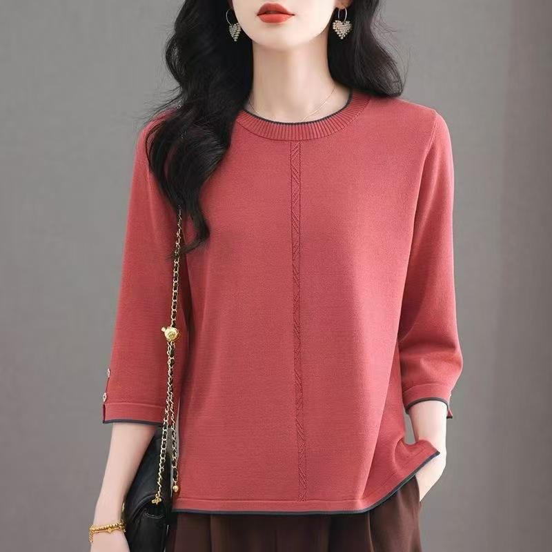 ニット レディース 七分袖 ゆったり ラウンドネック Tシャツ カットソー 薄手 接触冷感 トップス 接触冷感 伸縮性 体型カバー 普段使い