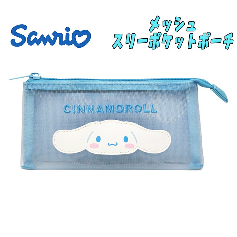 【メール便送料無料】サンリオ シナモロール メッシュスリーポケットポーチ サックス 推しキャラ 小物入れ ポーチ ペンケース 筆記用具 子供用 キッズ 中高生 雑貨 新学期 入学 入園 キャラクターグッズ お祝い プレゼント ケイカンパニー (CM3P1-CN 180025)