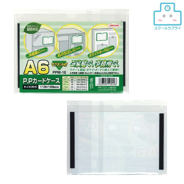 ▼商品詳細はこちらをクリック!納期早め通常4〜5営業日内に発送予定メール便不可メール便でご注文頂いた場合でも自動的に宅配便送料へ変更いたします返品について仕様商品名共栄プラスチック PPカードケース マグネット付 A6メーカー名共栄プラスチック商品番号PPM-16セット数10セット仕様・規格:A6・外径寸法:縦110×横159×厚0.2mm商品説明●オリオンズ ORIONS●スチール製品・ホワイトボードに使えて便利!!●地球にやさしい環境対応●予定表・工程表・カレンダー・伝票etc・入れにご使用ください。●商品画像はPPM-14の画像です。備考※パッケージや仕様はメーカー要因により予告なく変更になる場合がございます。お中元、お歳暮、母の日、父の日、敬老の日、ブライダル、誕生日、記念日、恩師・上司へのギフトに文房具が喜ばれます。また、結婚内祝い、出産内祝い、合格祝い、就職祝い、卒業祝い、入園・入学祝い、昇進祝い、還暦祝いなどのお祝いのプレゼントや、販売促進の景品やギフトにも。デザイン文具やオフィス文具、学校で使える文房具、事務用品などの様々なステーショナリーのアウトレットや訳ありセール商品もご用意。商品への名入れやラッピングも行っています。文房具なら和気文具(ワキ文具)[tag:共栄プラスチック][tag:その他文具製品]
