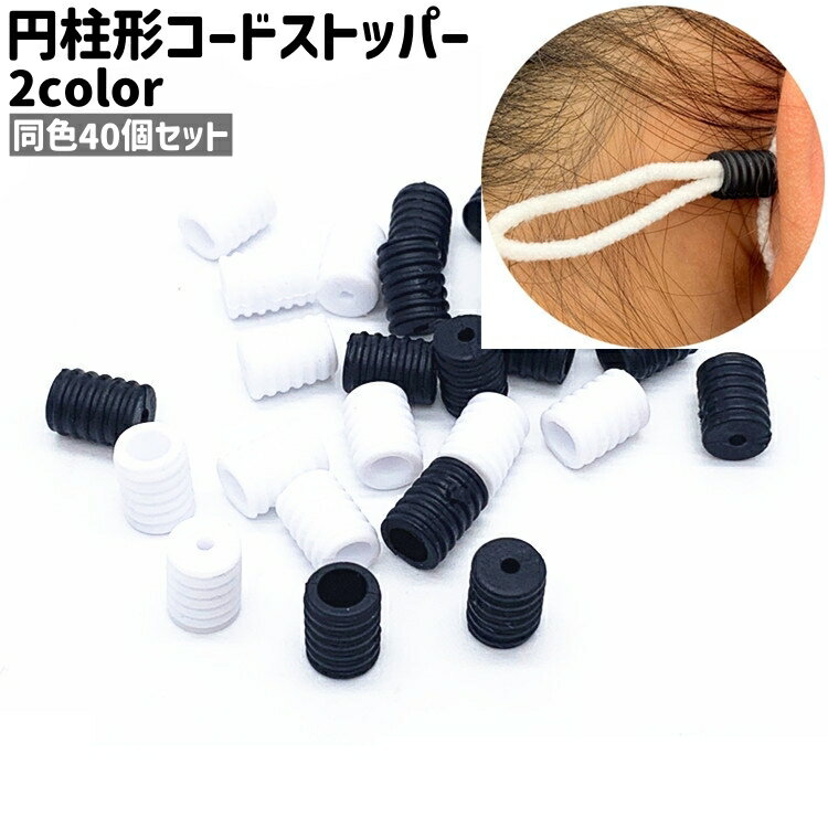 送料無料 コードストッパー 40個セット 40個入り コードロック 紐ストッパー ロープストッパー 紐止め 留め具 円柱形 円筒 プラスチック製 シンプル 紐調整 手芸 ハンドメイド DIY 手作り 黒 白 単色