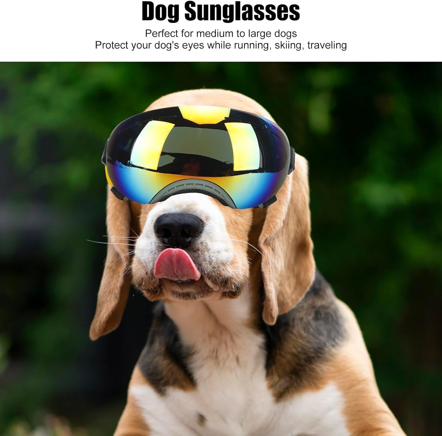 犬用保護ゴーグル UVカット防塵通気型サングラス 犬の目を風・紫外線から防御 アウトドアスポーツ対応 スキー用頑丈設計 調節可能ストラップ付き 中大型犬向け 快適着用メガネ(L,シルバーレンズ)