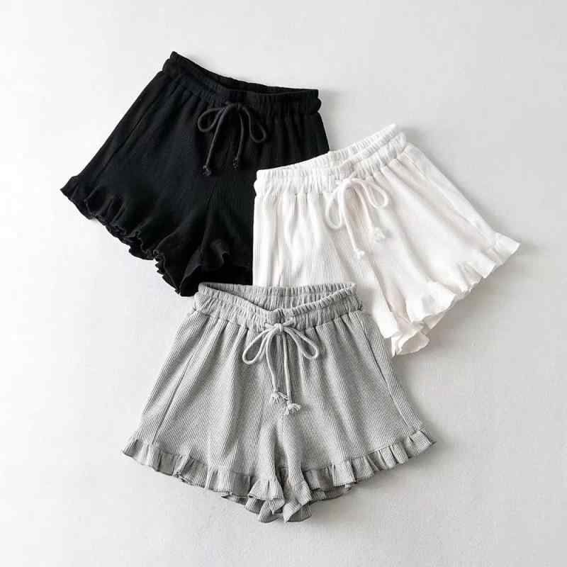 ショートパンツ レディース 婦人服 再生繊維 ワッフル 高見え 普段使い ルームウェア 部屋着 スポーツ 運動着 ウエストゴム ギャザー 黒 白 グレー