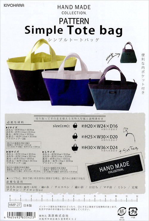 型紙 シンプルトートバッグセットHAND MADE COLLECTION パターン 清原HMP-27