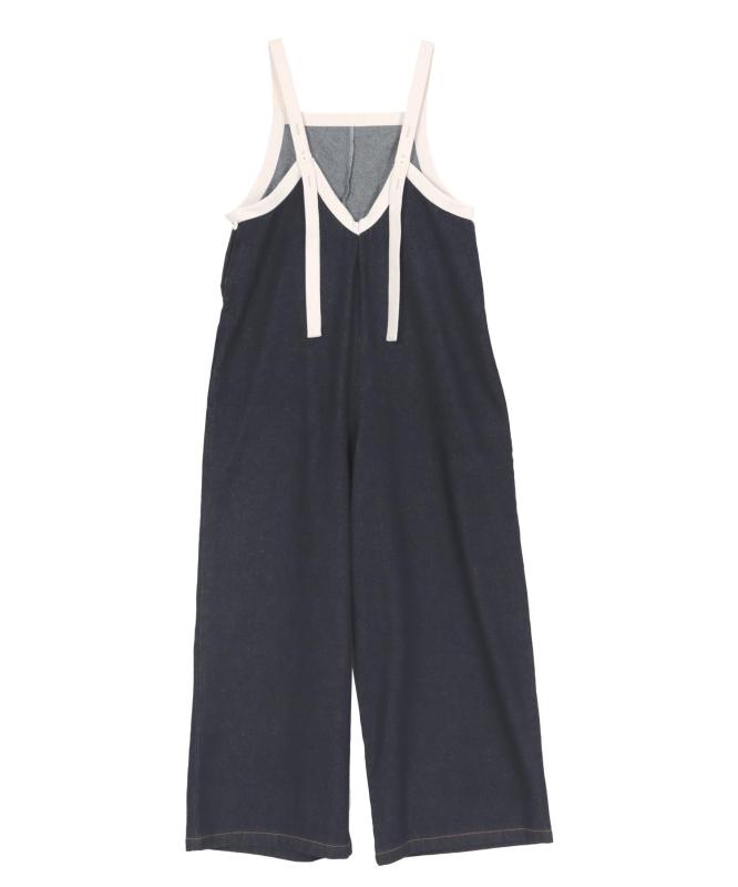 [神戸レタス] デニム オールインワン 前後2way ジーンズ サロペット ジャンスカ レディース 春 夏 夏服 ワイドパンツ ボトム パンツ ワイド ウェーブ おしゃれ オシャレ [E3524]女性らしさを魅せる大人のデニムオールインワン。バイカラーで縁取ったパイピングデザインが新鮮なアクセント。前後2wayで着回せVネック、スクエアで印象を変えて着こなしていただけるシーズンレスで活躍してくれるデニムサロペットです。程よい柔らかさのデニム素材。ボリューミーなゆとり感がラフな緩さを演出し立ってるだけでサマになる雰囲気に。丈はストラップボタンで3段階で調整可能、低身長さんにも合わせていただける2丈展開でご用意しました【M】総丈 138、身幅 46、ヒップ幅 57、前股上 70.5、股下 65.5、ワタリ幅 38、裾幅 33 【プチM】総丈 129、身幅 46、ヒップ幅 57、前股上 67.5、股下 59.5、ワタリ幅 38、裾幅 33