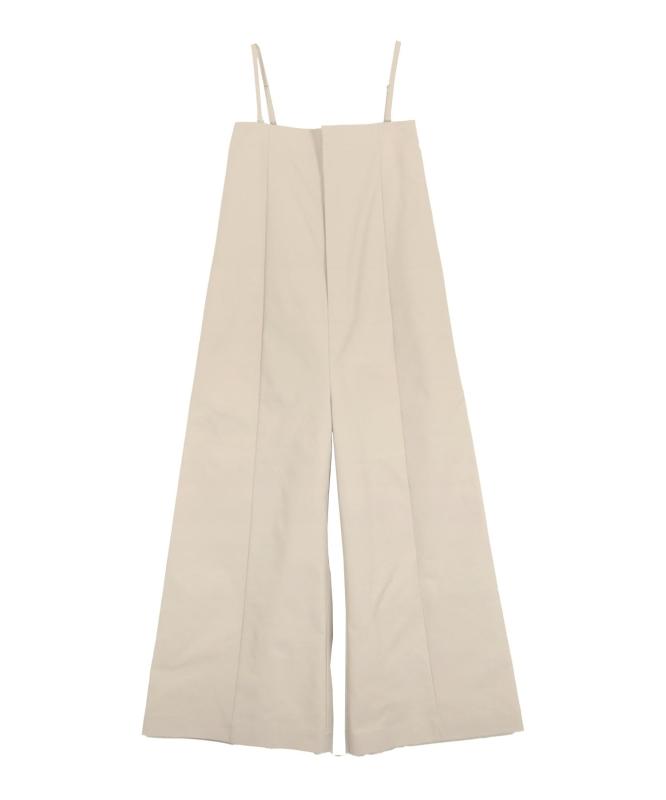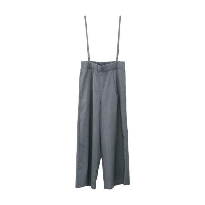 [アクアガレージ] リネンライクサスペンダー付きパンツ ハイウエスト オールインワン サロペット マキシ丈 無地 ワイドパンツ ジャンスカ シンプル カジュアル ウエストゴム バックゴム