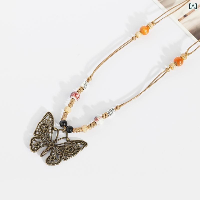 レディース アクセサリー レトロ セラミック ネックレス ロング 蝶 セーター チェーン 秋冬 スウェットシャツ ネックレス ペンダント