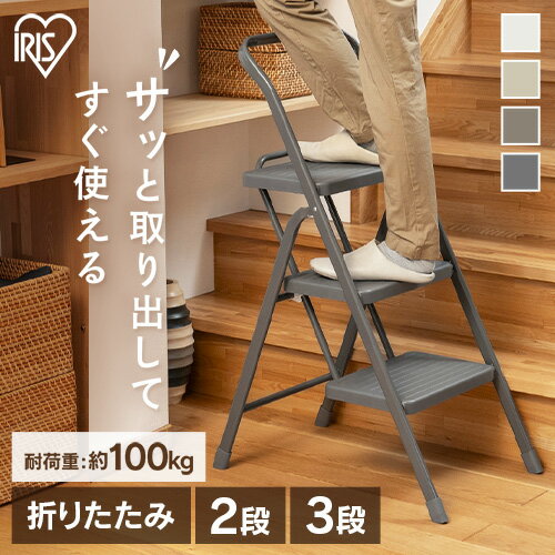 踏み台 脚立 2段 3段 折りたたみステップ ステップスツール ステップチェア 梯子 はしご OSU-2R OSU-3R ベージュ チャコール グレー 折りたたみ 折り畳みステップ台 シンプル スチール 座れる 台 掃除 キッチン 室内 ストッパー付き アイリスオーヤマ[2512SE]