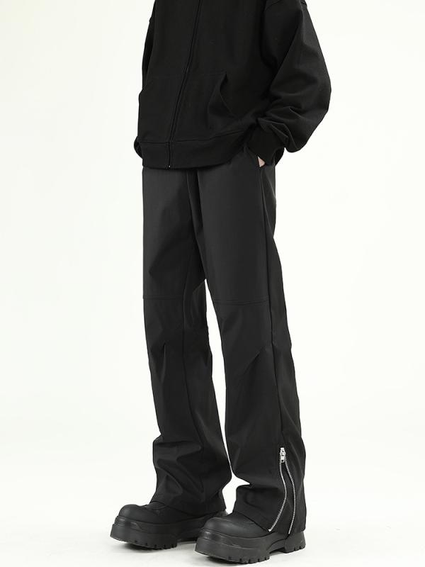 パンツ 男性用 ストリート系 リラックス ワイドレッグ カジュアルパンツ スポーティー 白グレー 黒 ポリエステル混紡 春秋