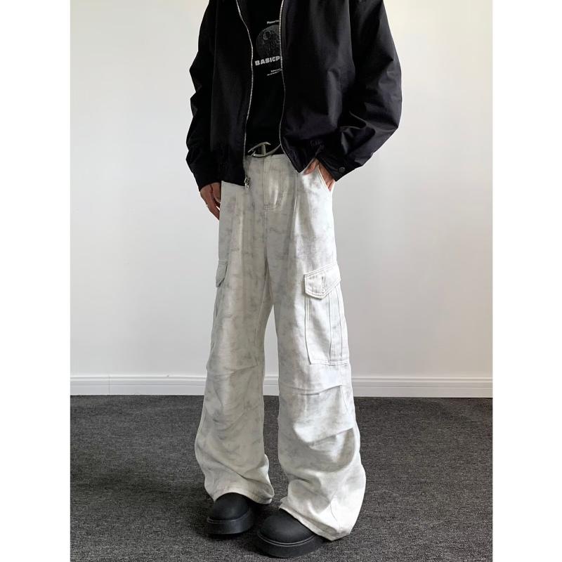 パンツ メンズ ワークパンツ ストリート系 絞り染め ワイドレッグ カーゴパンツ ゆったり ズボン 男性用 ボトムス カジュアル スポーティー 春秋