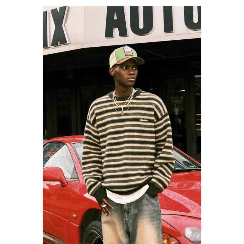 ・カテゴリ: ニット・デザイン: プルオーバー・フィット: ルーズ・ネックライン: ラウンドネック・袖丈: 長袖・厚さ: 普通・スタイル: ストリート・デザインディテール: パッチワークカラー・主な素材: アクリル・主な素材含有率: 42%・生地: 化学繊維混紡・シーン: カジュアル・シーズン: 春秋・対象性別: 男性・対象年齢層: 成人・カラー展開: ブラック、コーヒー・サイズ展開: M, L, XL