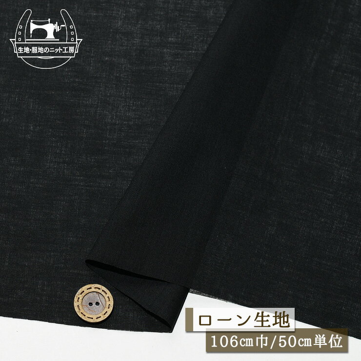 【無地/ブラック】ローン生地 コットン 薄手 幅106cm 横方向に少しだけストレッチ性有 透け感有 布帛【50cm単位 メール便5ヶまで】(4-1968)